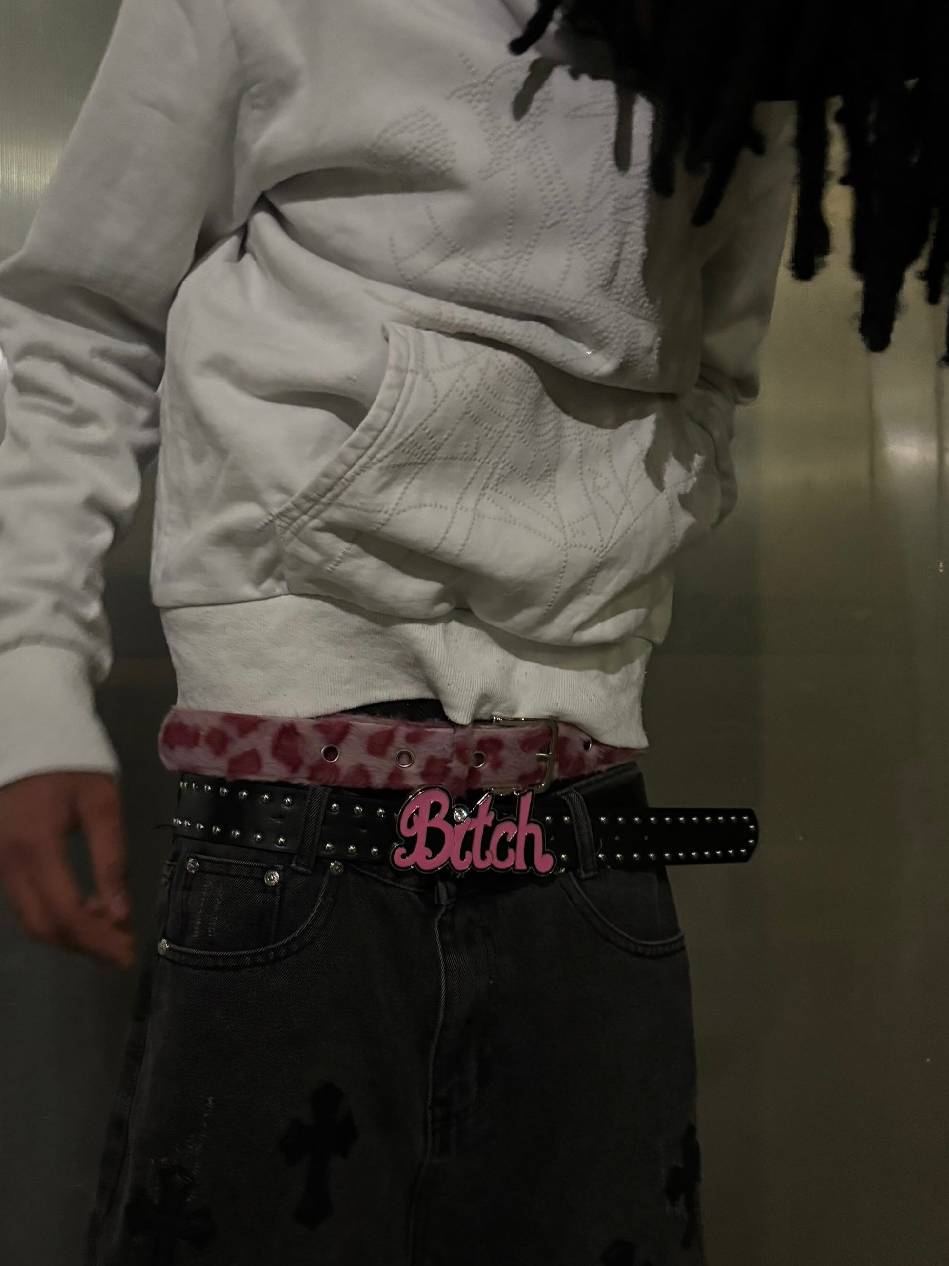 - Cette ceinture girly rose "B*tch" est un accessoire de mode américaine qui ajoute une touche Y2K à votre tenue.